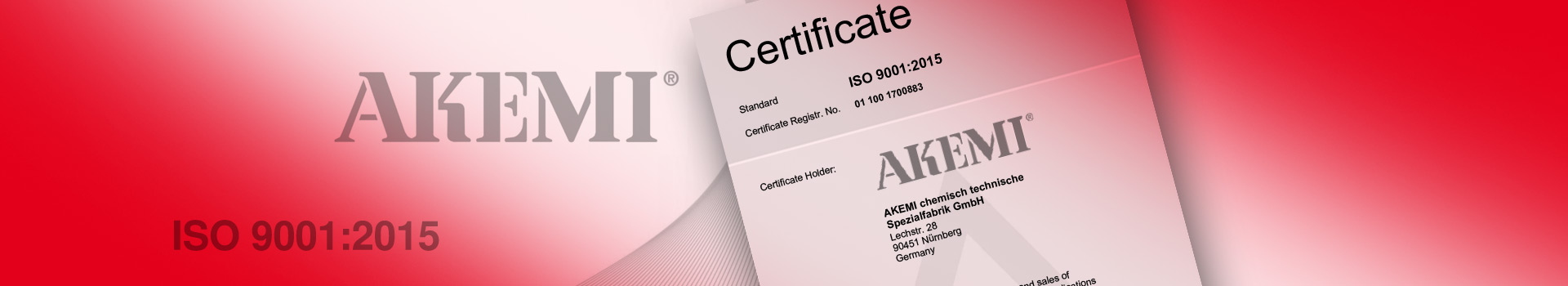 To assure the continuity of the premium quality of AKEMI products, a quality management was introduced at AKEMI Germany a long time ago according to ISO 9001:2008 which is externally certified und controlled regularly.